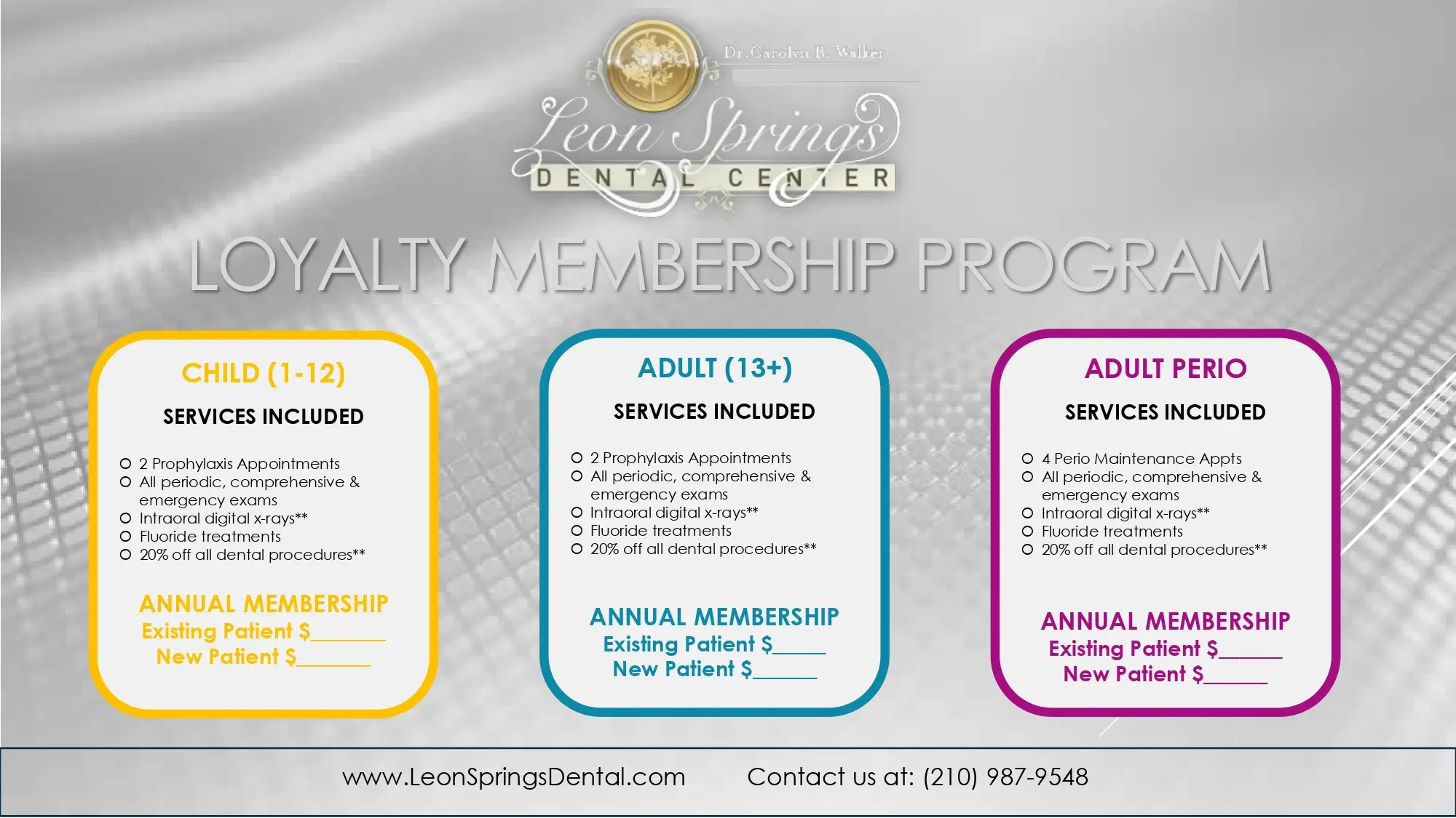 At Leon Springs Dental Center, we believe our patients should have affordable access to healthcare services. Everyone deserves to feel great and confident about themselves. We offer a loyalty program and financing options so that you can afford the best possible care and services.